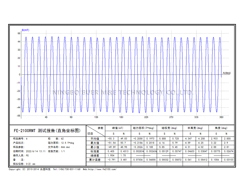 充磁方式:平面多级充磁(外圈64级,内圈62级)